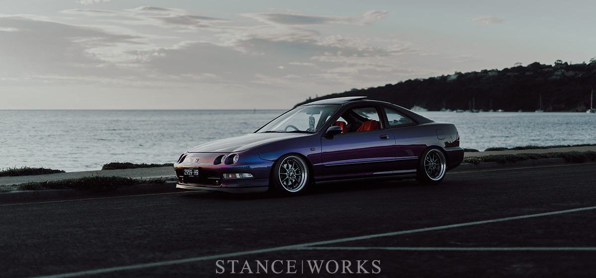 This 1994 Integra GSI exudes a late '90s-early '00s SoCal vibe with its newly refreshed engine and striking color-shift paint called 'People Eater.' Featuring Blitz Techno Speed wheels and BC BR coilovers, the car balances nostalgic styling with a modern twist.