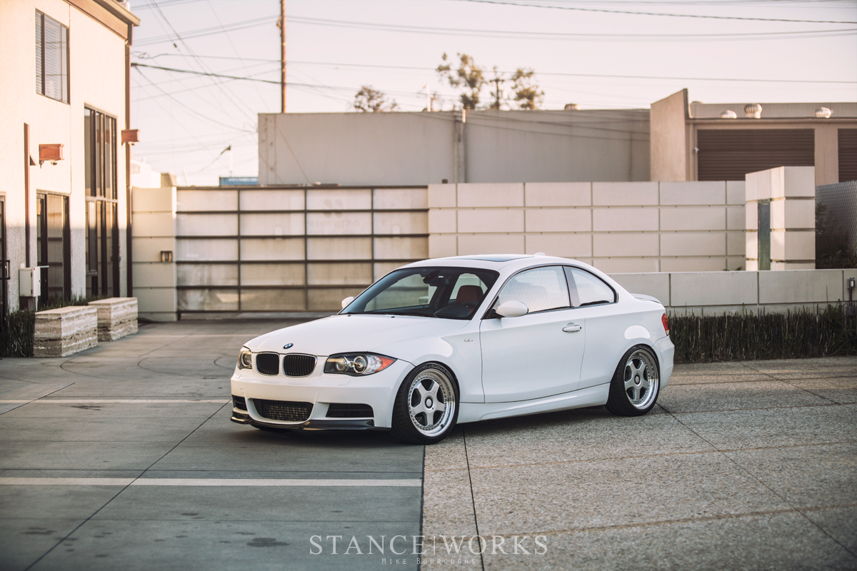 Jeremy Whittle revitalizes this white BMW 135i coupe with a modernized interior and substantial performance enhancements. The car features custom Fab Factory intake and exhaust components paired with Active Autowerkes upgrades, pushing its power output to new heights. With a striking set of 18-inch Hamann PG1 wheels, it's both a visual and mechanical statement.