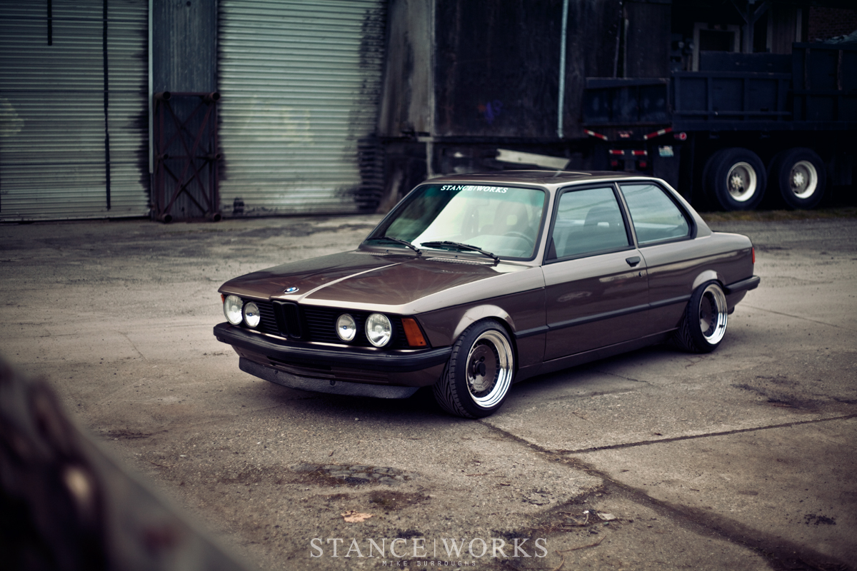 Nic Foster's BMW 320i exudes individuality and style, painted in Sepang Bronze Metallic and fitted with Ronal Racing splits wheels. The build features European market body panels, a re-done black-and-brown houndstooth interior, and standout details like shadowlining and unique headlight treatments.