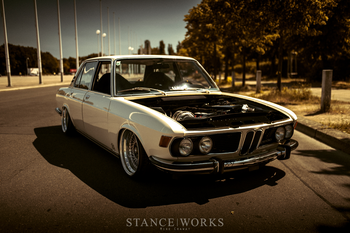 This 1970 BMW E3 2800 sedan, brought to life by WCP in Austria, features a turbocharged M50 swap from the E36 platform. Enhanced with air ride and distinctive custom 3-piece wheels, it embodies a perfect blend of classic style and modern performance.