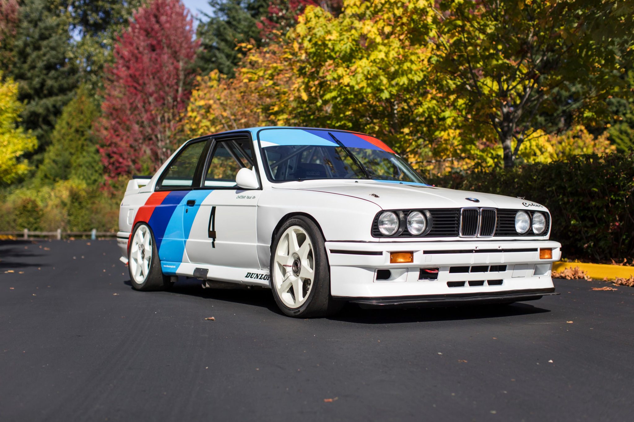 This 1988 BMW M3 was initially delivered to France’s SDA race team with Group A modifications and competed in the French Touring Car Championship. It was later converted to Supertouring specification before reverting to Group A-spec. The car features a rebuilt 2.5-liter S14 inline-four engine, a Prodrive/Getrag 265 five-speed manual transmission, and Brembo brakes. Finished in white with tri-color M stripes, it includes 18" Speedline wheels, a Matter roll cage, and other race-ready equipment. The car has a storied competition history, including races in France, Spain, and the US, and is offered with service records and an FIA Historic Technical Passport.