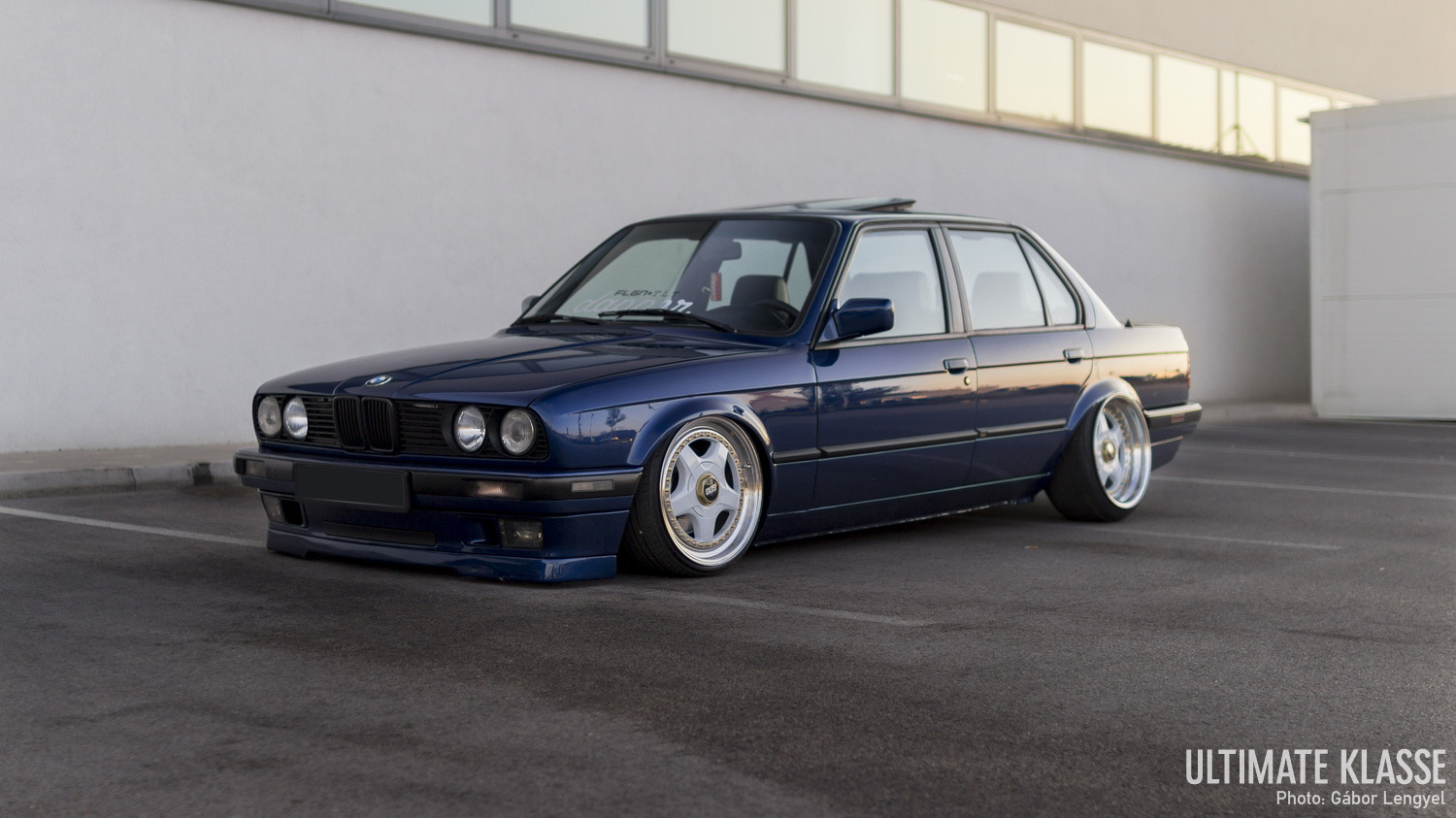 The deep Avusblau paint envelopes the car in a striking hue, while the BBS RF wheels and air ride suspension give it an aggressive yet refined stance.