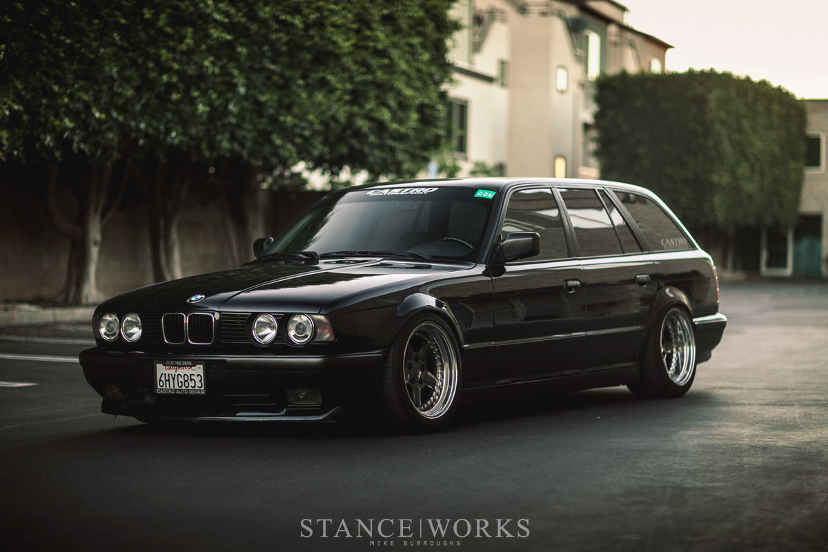 Chris Castro's build transforms an unassuming BMW E34 wagon into a 480-horsepower sleeper, blending subtle carbon black aesthetics with potent performance. Equipped with a turbocharged M52 engine, flared arches, and AC Schnitzer wheels, it's a stunning mix of practicality and adrenaline.