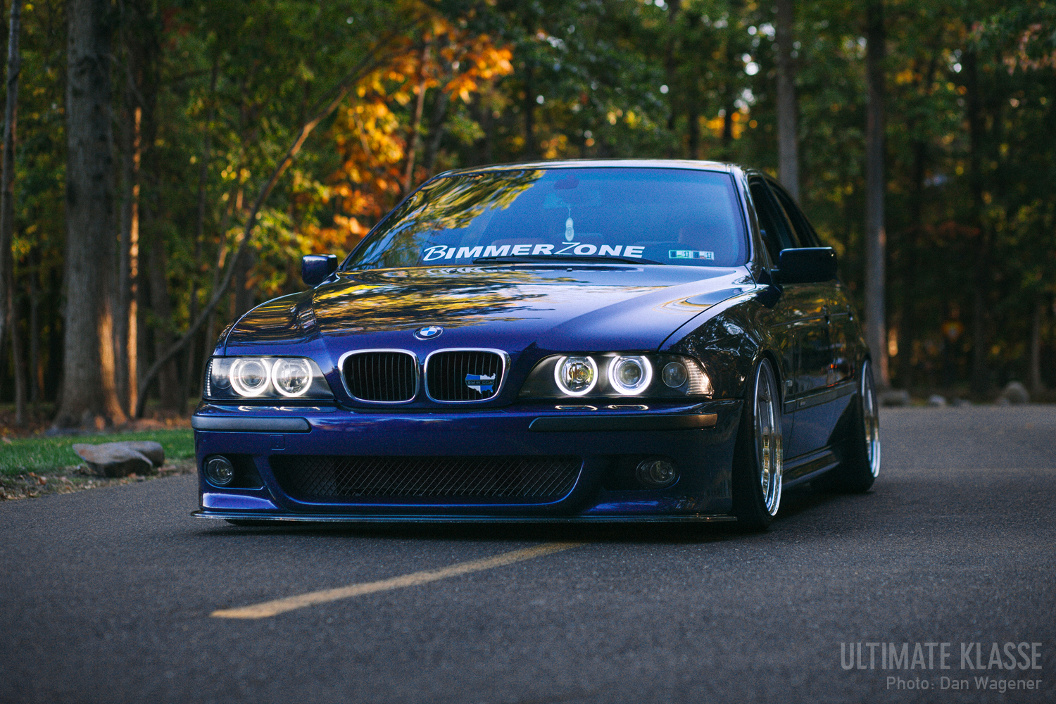 Mike Ashcraft's E39 528i combines high mileage with a personalized touch, featuring a Montreal Blue finish, E39 M5 aero elements, and custom OZ Mito wheels. The exterior is accentuated by a low and aggressive stance courtesy of Broadway Static coilovers, while the interior makeover showcases black and Cinnamon tones, perfectly juxtaposed with the car's sleek aesthetic.