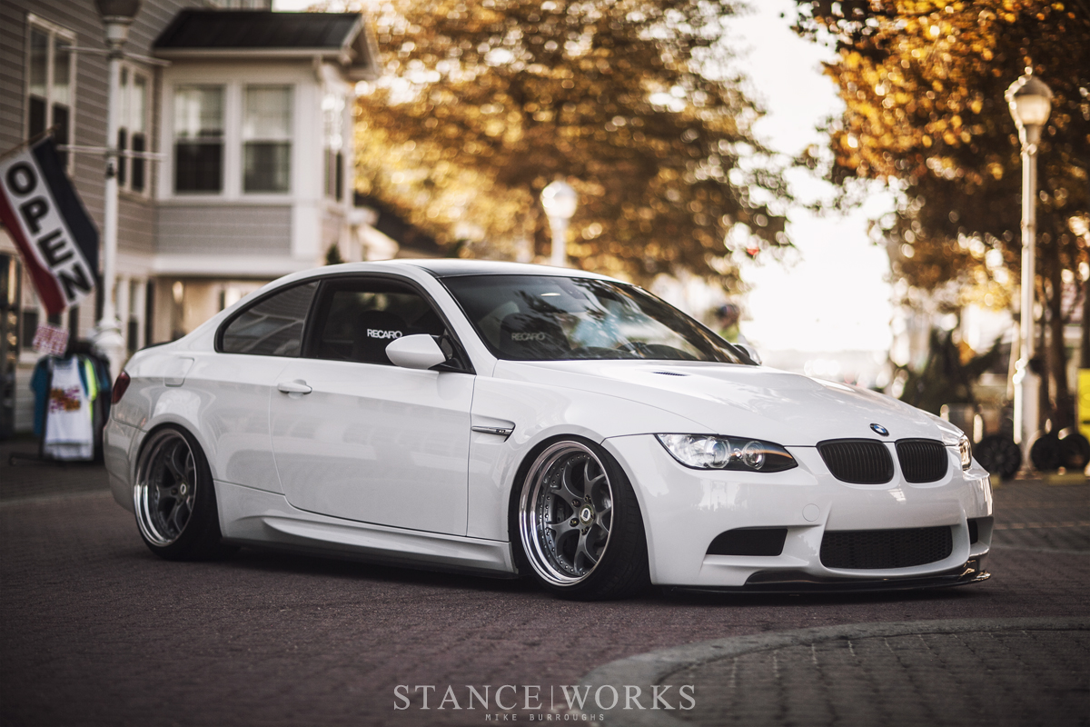 Alex Goldstein's BMW E92 M3 stands out with its refined aesthetics, featuring Racing Dynamics S4 wheels and subtle aerodynamic enhancements like a Mode carbon front lip and a Vorsteiner diffuser. The car balances a low stance with practicality, owing to Broadway Static suspension and carefully chosen camber arms, creating a polished yet aggressive look.