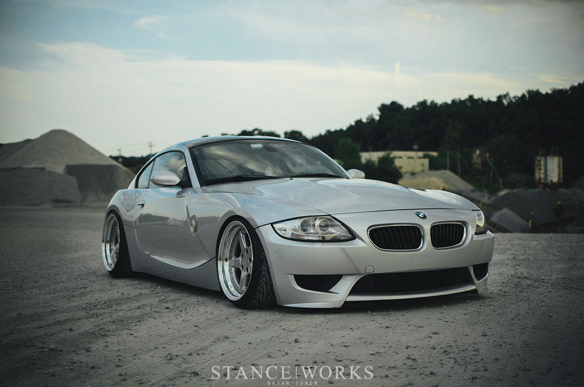 Stefan's BMW Z4M Coupe stands out with its titanium silver finish, complemented by custom raw aluminum side-markers and a gloss black roof wrap. Fitted with AC Schnitzer Type 2 wheels and a carefully crafted suspension setup, the coupe showcases a perfect balance of style and performance.