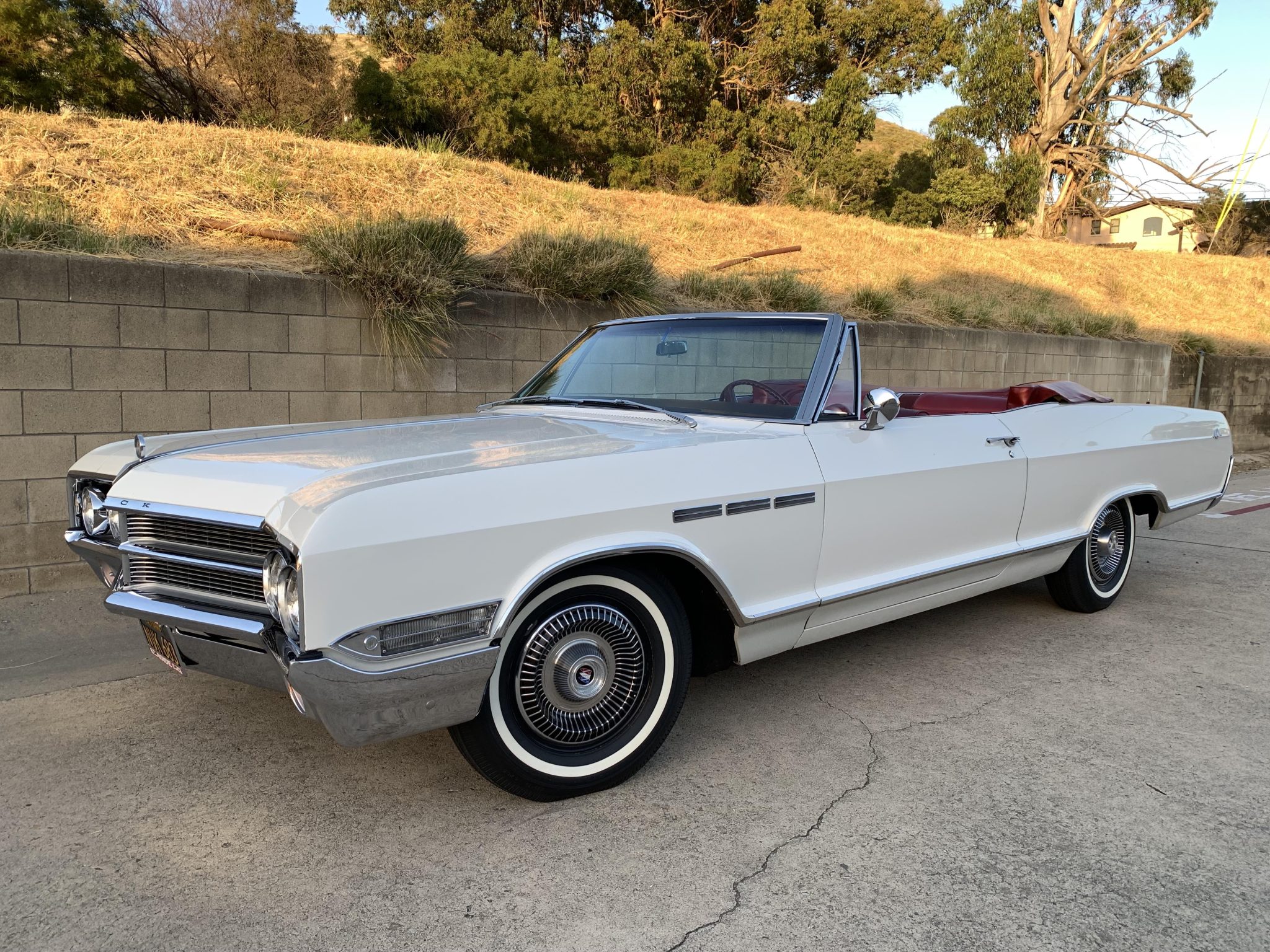 This elegant 1965 Buick LeSabre Custom convertible shines in its Arctic White paint with a matching power-operated convertible top, over classic red vinyl interiors. Powered by a 300ci V8 engine and featuring a two-speed automatic transmission, it boasts nostalgic flair with modern updates like Bluetooth-enabled radio and PerTronix electronic ignition.
