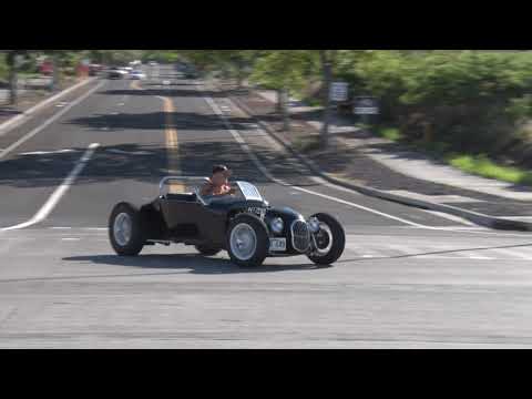 This custom roadster, finished in metallic black with apricot pearlescent accents, features a fiberglass body on a custom steel frame. Powered by a 2.0-liter Alfa Romeo twin-cam engine with twin Weber carburetors, it rides on 16” Jaguar wire wheels and boasts a vintage hot rod style with modern touches.