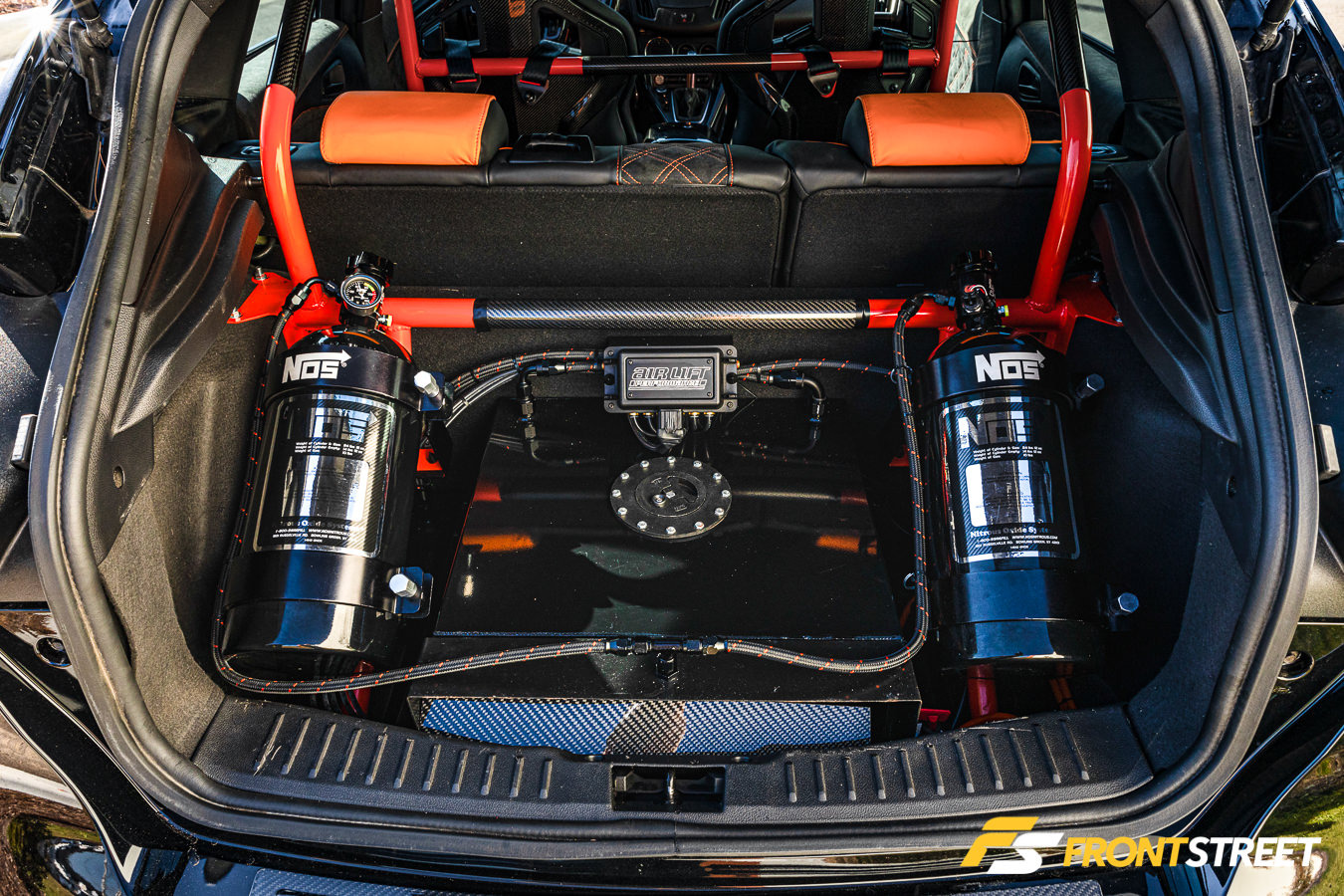 Jeremy Allison's 2016 Ford Focus ST features an extreme transformation from its original setup. Powered by an 850whp Whipple-supercharged 5.0-liter Coyote V8 from a Mustang and converted to rear-wheel drive, this Focus ST is a testament to creativity and engineering. The build combines the Mustang's suspension system, a six-speed auto transmission, a custom roll cage, and Air Lift Performance air suspension to achieve its remarkable stance. The build dons a widebody kit for an aggressive appearance, with CEIKA GT-29 wheels wrapped in Toyo Tires Proxes R888, along with CEIKA big brakes for essential stopping power. A black and orange theme is paired with Anderson Composites carbon fiber components for added visual flair. Inside, carbon fiber extends throughout to custom Recaro seats. The project showcases Jeremy's impressive capability, with significant involvement from his family in the nine-month build process.