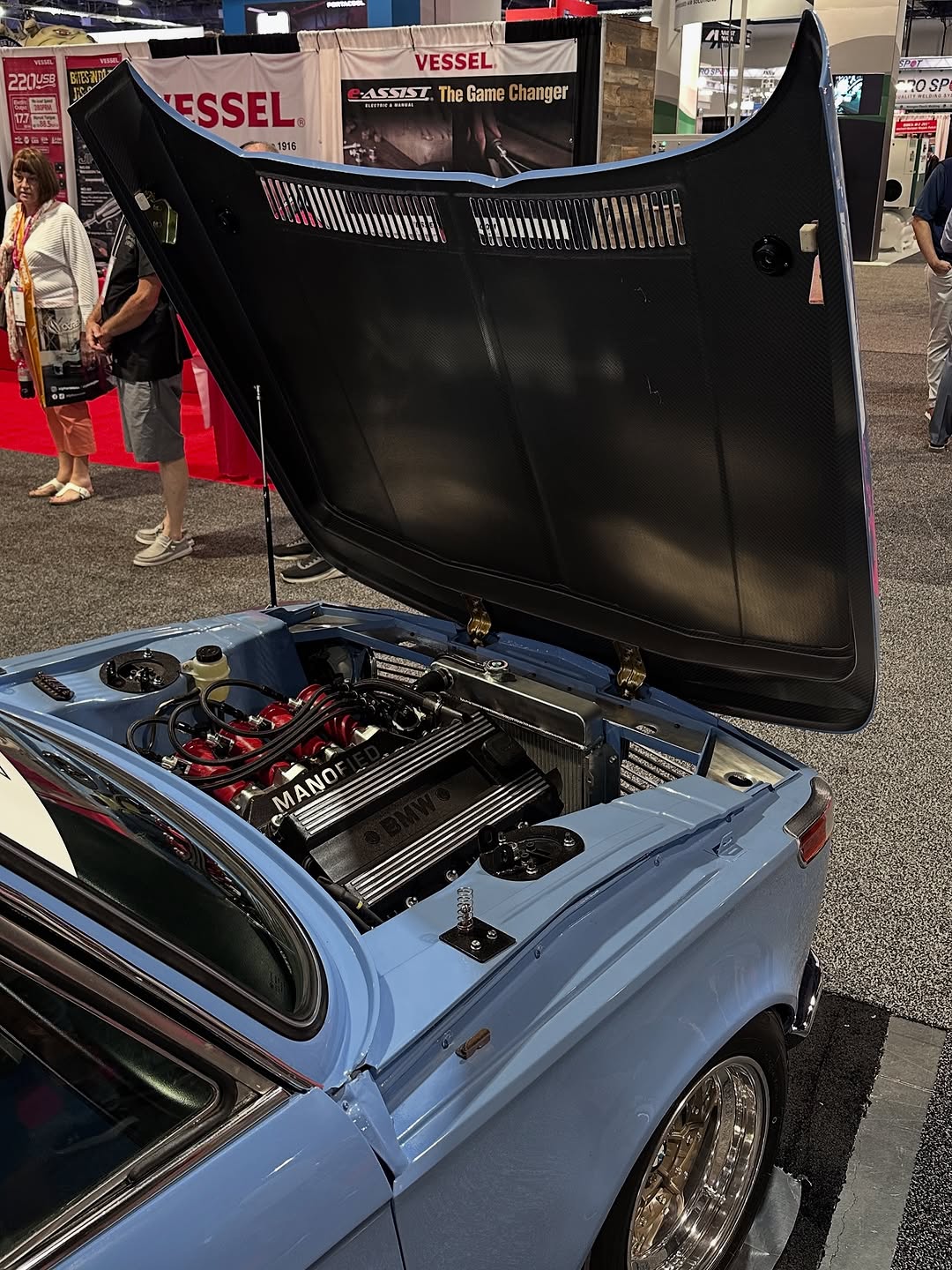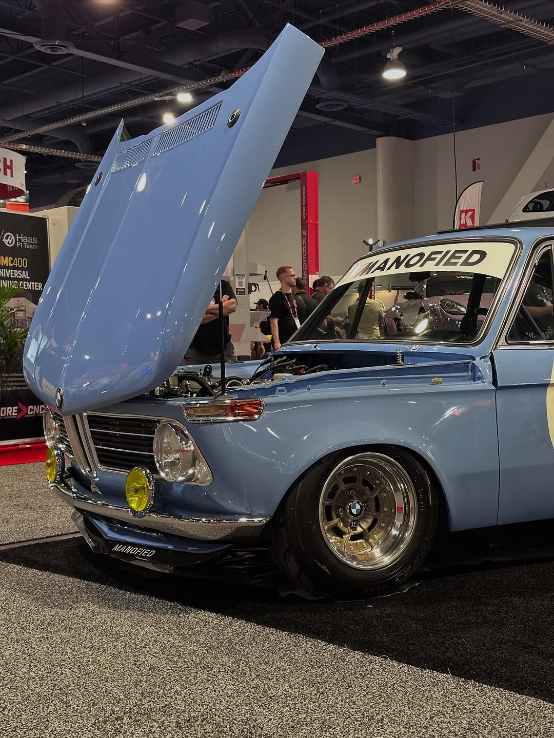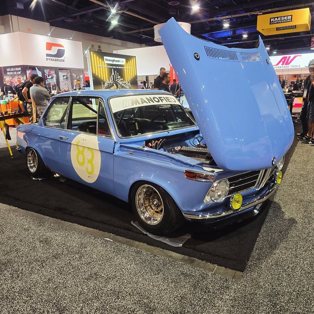 This BMW 2002 showcases a seamless blend of classic style and modern performance with a 90s 16V engine fitted with ITBs. Its light blue paint and racing decals add a vintage racing vibe.