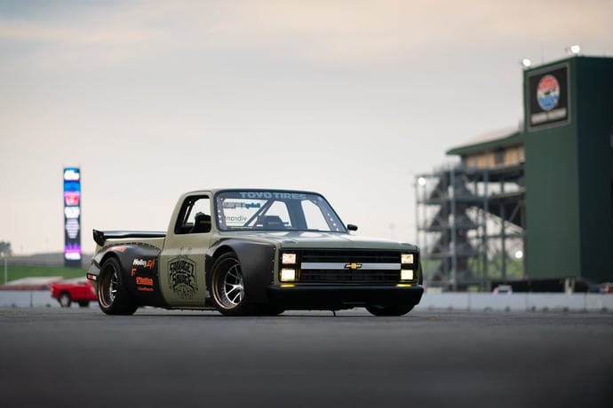 This Chevrolet C10, built by Salvage to Savage, features a Tesla Large Drive Unit swap with approximately 1000 horsepower and 1800 lb-ft of torque. The build includes a custom chassis, a Corvette C5 front cradle, and a Tesla Model 3 long-range battery pack. Exterior modifications feature a wild carbon fiber bodywork designed by Fortune Flares and three-piece Finspeed wheels. Inside, the truck sports Status Racing carbon fiber seats and a custom dashboard. This EV conversion blends classic looks with cutting-edge technology, emphasizing both performance and style.