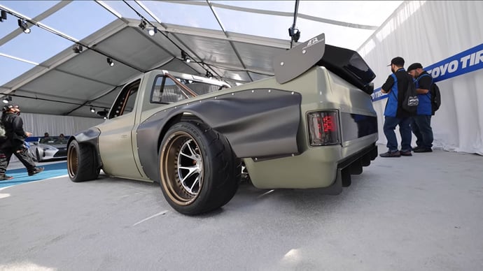 This 1985 Chevy C10, built by Salvage 2 Savage, is a standout at the 2021 SEMA show with its twin Tesla-powered all-wheel-drive electric setup. The truck showcases a striking build featuring advanced electric drivetrain components, making it a unique fusion of classic pickup styling and modern electric performance.