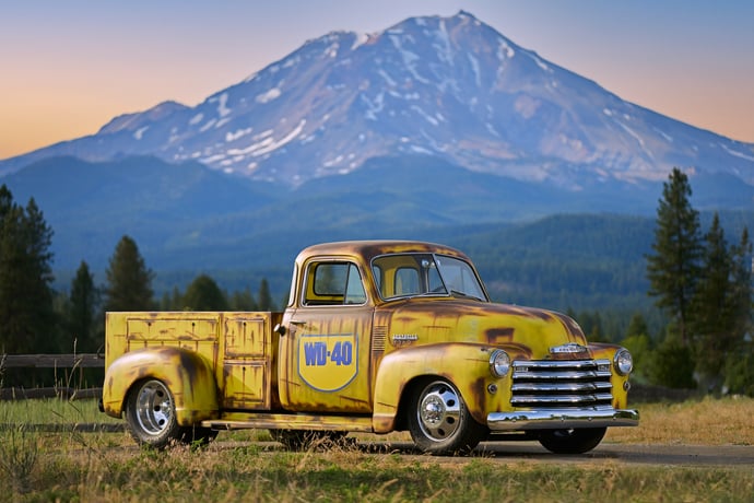 Trad Ronfeldt's 1951 Chevrolet 3100 is a restomod that fuses vintage charm with modern enhancements. Built with the theme of a WD-40 fleet truck, this build features a custom utility bed inspired by a Bell telephone service truck. The truck boasts a Sniper-equipped 383ci small-block Chevrolet stroker engine producing 520 horsepower, channeled through a 4L60 transmission to dually wheels. The suspension combines a Currie Dana 60 rear axle with custom four-link and coilovers and a Nostalgia Sid’s dropped front axle. The vehicle's patina finish by Airhead Designs gives it an authentic aged look, complemented by a distressed leather interior by B62 Interiors. This subtle yet striking build showcases Trad's racing experience and commitment to the survivor theme.