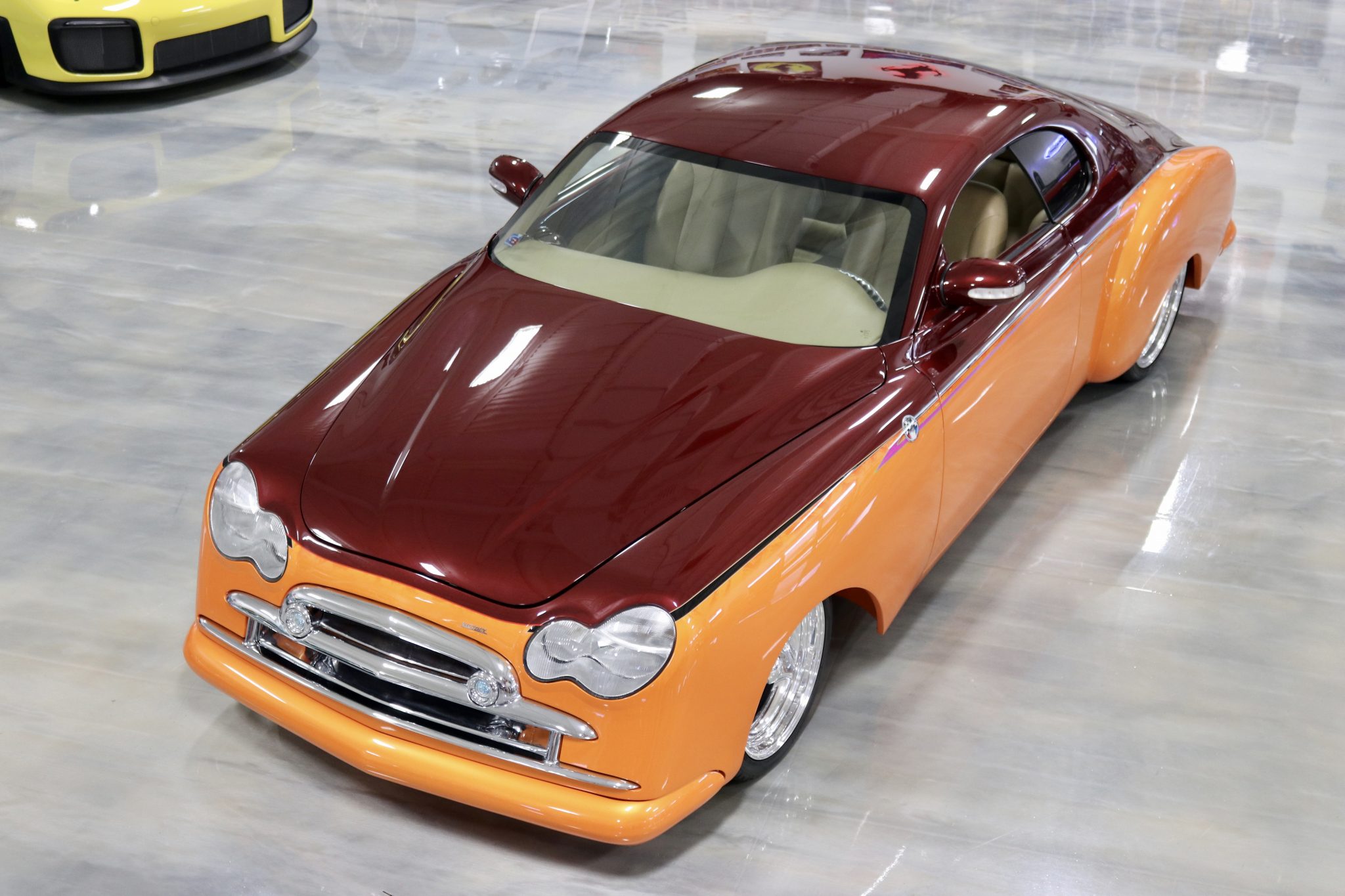 - Custom steel panelsCustom pinstriping and airbrush workMercedes-Benz headlightsFour-link rear endCustom intakeBody-colored engine coverChrome valve covers with carbon-look insertsStainless-steel exhaust systemBaer disc brakesRack and pinion steeringCustom grilleCustom tan interiorVintage Air HVAC systemMooneyes electronic shifterFlaming River steering columnDolphin instruments