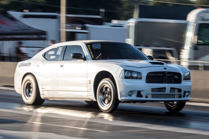 Chris 'Legmaker' Harrigan's 2006 Dodge Charger SRT-8 is a standout build in the HEMI community. Originally seeking a high-horsepower sedan, Harrigan swapped his BMWs for the Charger and began upgrading it with a Paxton Novi 1500 supercharger. Eventually, he equipped it with a ProCharger F-1A-94 supercharger, paired with a Billy Briggs Racing-built Gen III HEMI engine featuring Manley H-beam rods and Thitek Bear heads. The car also features a Holley Dominator EFI system and Weld Racing wheels, with drag racing as its primary focus. It achieved notable success by capturing the 8.50 Index win at the Modern Street HEMI Shootout.