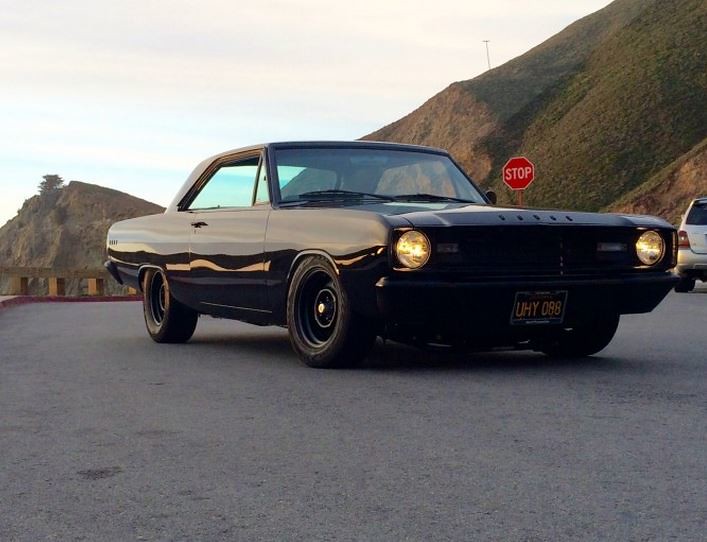 This 1967 Dodge Dart features an aggressive all-black exterior paired with a performance-oriented drivetrain. Built by Alloy Motors, the V8 hardtop showcases a rebuilt Mopar 360 engine and a striking stance on steelies. The fully restored bodywork includes shaved and tucked bumpers, while the interior benefits from new OEM-style upholstery and functional underdash A/C.