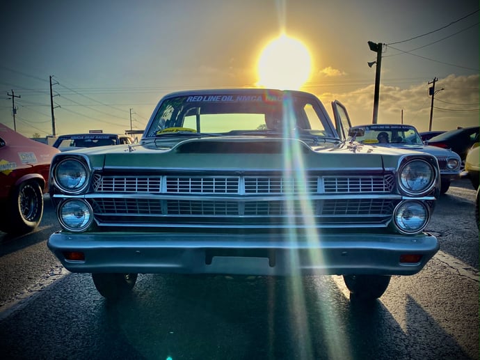 This 1967 Ford Fairlane, built by Michael Tagg, is a serious contender in the NMCA Nostalgia Muscle Car class. Originally a clean shell, it now houses an aluminum 427 block stroked to 482 cubic inches, built by Fillmore Machine. With Edelbrock aluminum heads, a Holley Dominator, and an Edelbrock Victor 427 intake, it's built for power. A Jerico 4-speed transmission and 4.56-geared Ford 9-inch rear end help it achieve low 10-second quarter-mile times. The Lime Gold paint and Torque Thrust wheels give it a period-correct look, enhanced by the '427 scooped' hood.
