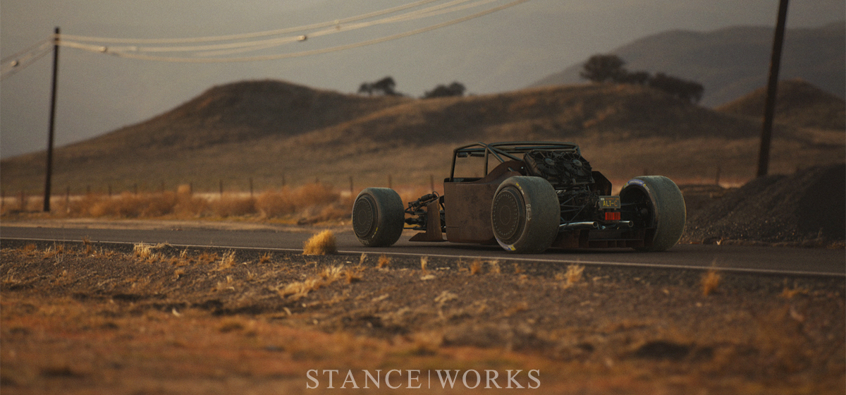 The 'Hellion' is a digital reimagining of the 1926 Ford Model T by Ash Thorp, featuring a big block Chevy V8 and an Acura NSX electric system for AWD, combined in a futuristic race car design. With BAC Mono pushrod suspension and custom aero components, it merges hot rod spirit with modern race aesthetics.