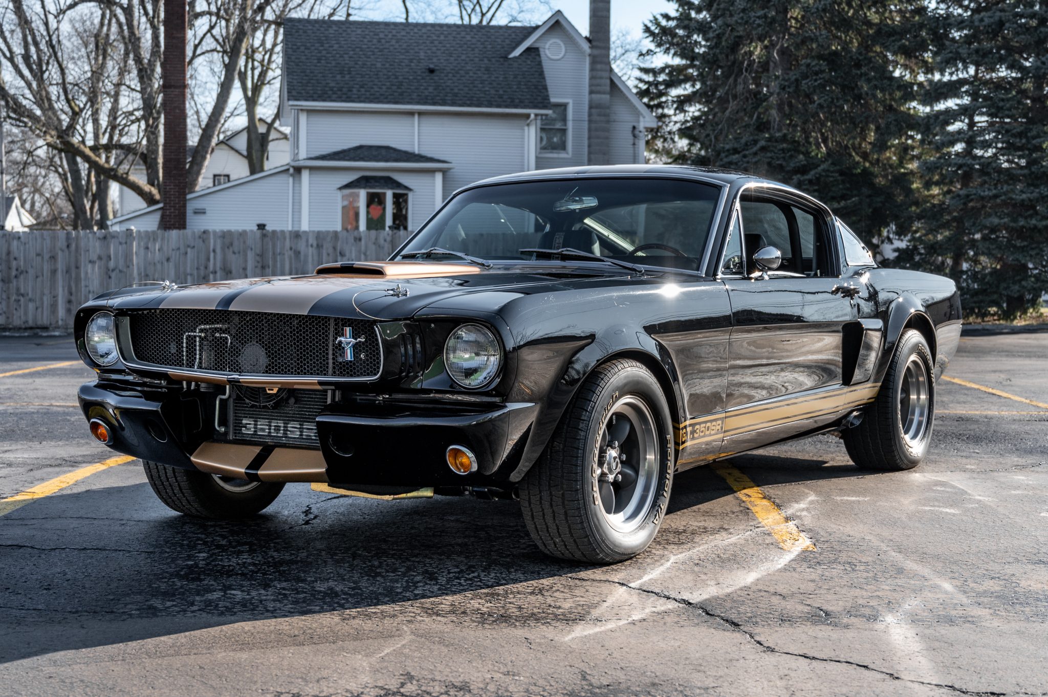 A continuation model built by Unique Performance to commemorate the 40th anniversary of the Shelby GT350, this 1965 Mustang fastback is striking with its black paint and gold stripes. Under the hood, a 408ci V8 engine breathes through individual throttle bodies, matched to a Tremec 5-speed manual. The exterior is enhanced with R-style valance, Shelby scoops, and Torq Thrust wheels, creating a powerful and nostalgic presence.