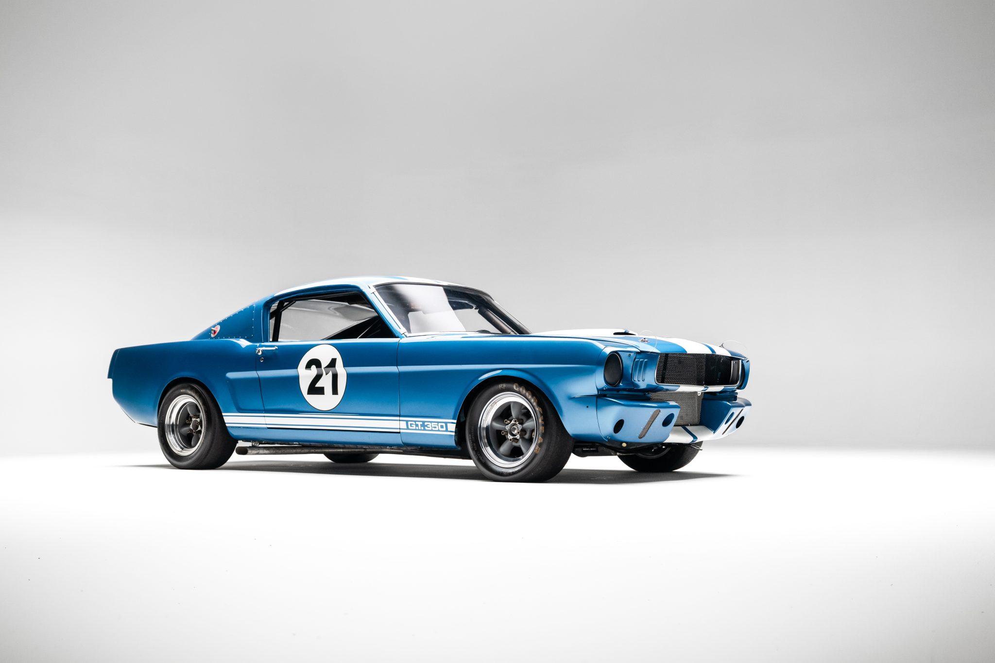 Transformed into a fastback R-style race car by Cobra Automotive, this blue 1966 Mustang features white LeMans stripes, a Dart 302ci V8, and a thoroughly stripped racing cockpit. Equipped with Torq Thrust-style wheels and advanced suspension, it's a vintage racing thoroughbred built for the track.