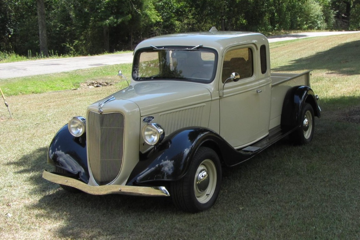 This LS3-powered 1936 Ford Pickup is a hot rod masterpiece featuring a lengthened cab and custom steel body with beige and black paint. Built by Gamel Street Rods, it boasts modern amenities like air conditioning, electric windows, and powerful Wilwood brakes for a blend of vintage style and contemporary performance.