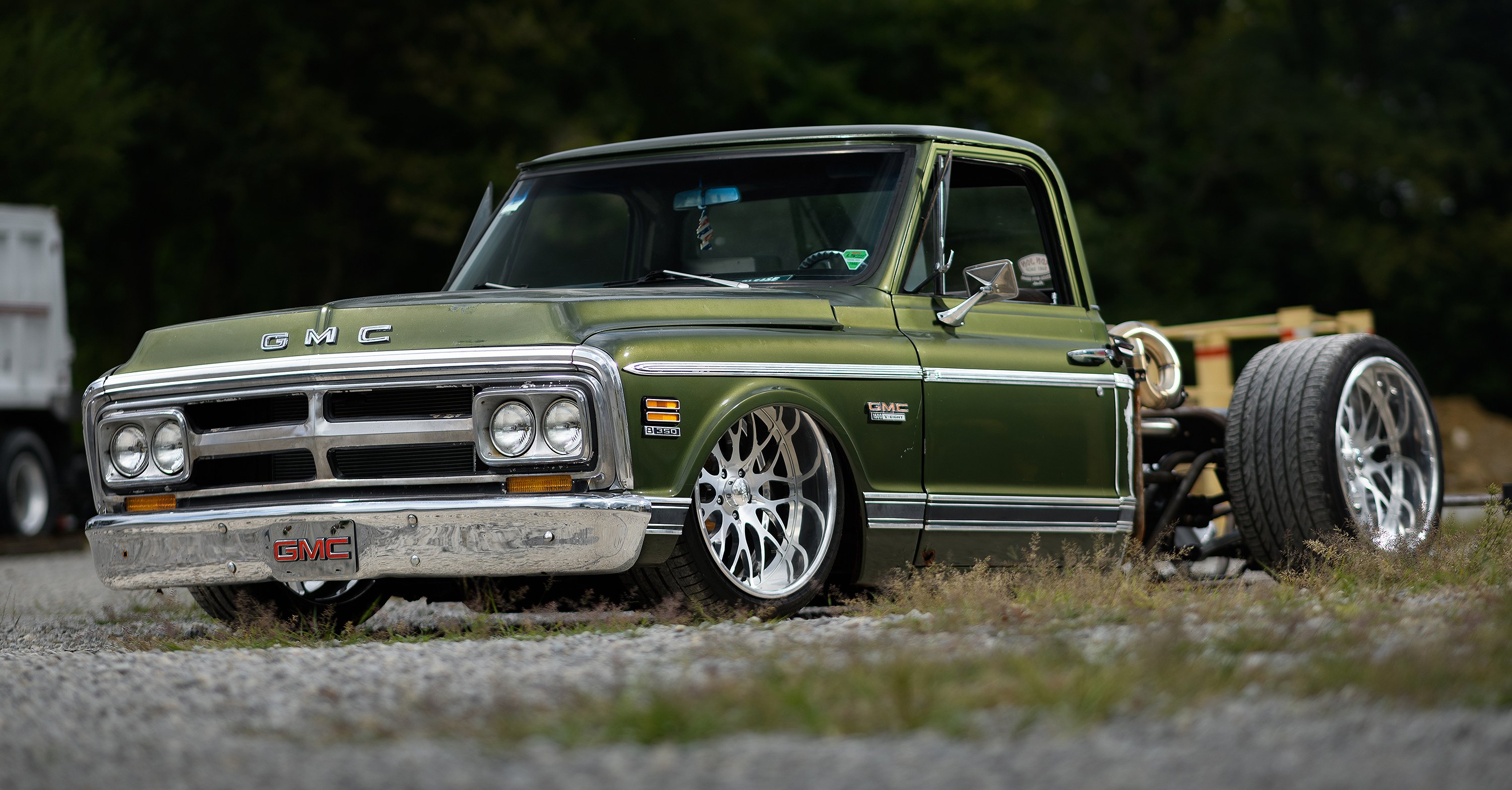 This 1971 GMC C10, built by Shawn Lavrick and his team at Twisted Speed and Performance, has been transformed into a show-stopping machine. It features a mid-mounted 6.0-liter LS V8 engine, fortified with a Callies forged crank, Diamond pistons, and a BTR Stage 3 camshaft. Boost is provided by twin 75mm turbos, culminating in a power output of approximately 1200 horsepower. The truck utilizes a C5 Corvette suspension, QA1 shocks, and an Air Lift air ride system to achieve its aggressive stance. Externally, the truck retains its classic look with minimal modifications, emphasizing its exceptional engineering.