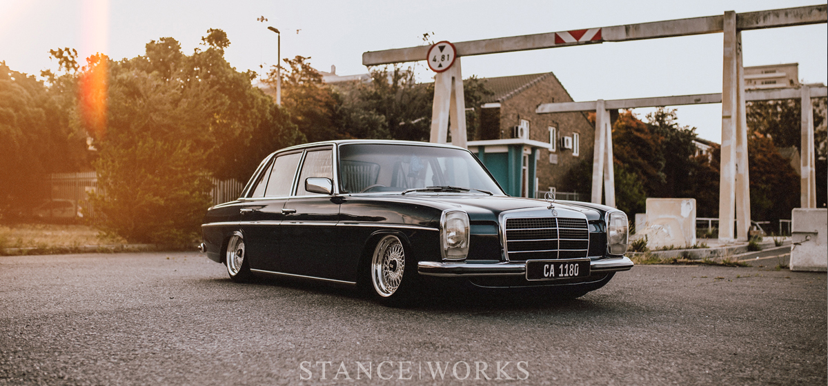 Tauriq Ajam's 1976 Mercedes-Benz W115 exudes classic elegance with its low-slung stance and vintage charm. The car, fitted with an Air Lift Performance air ride, sits gracefully on 15" OZ Vega split wheels, setting it apart in Cape Town's car community.