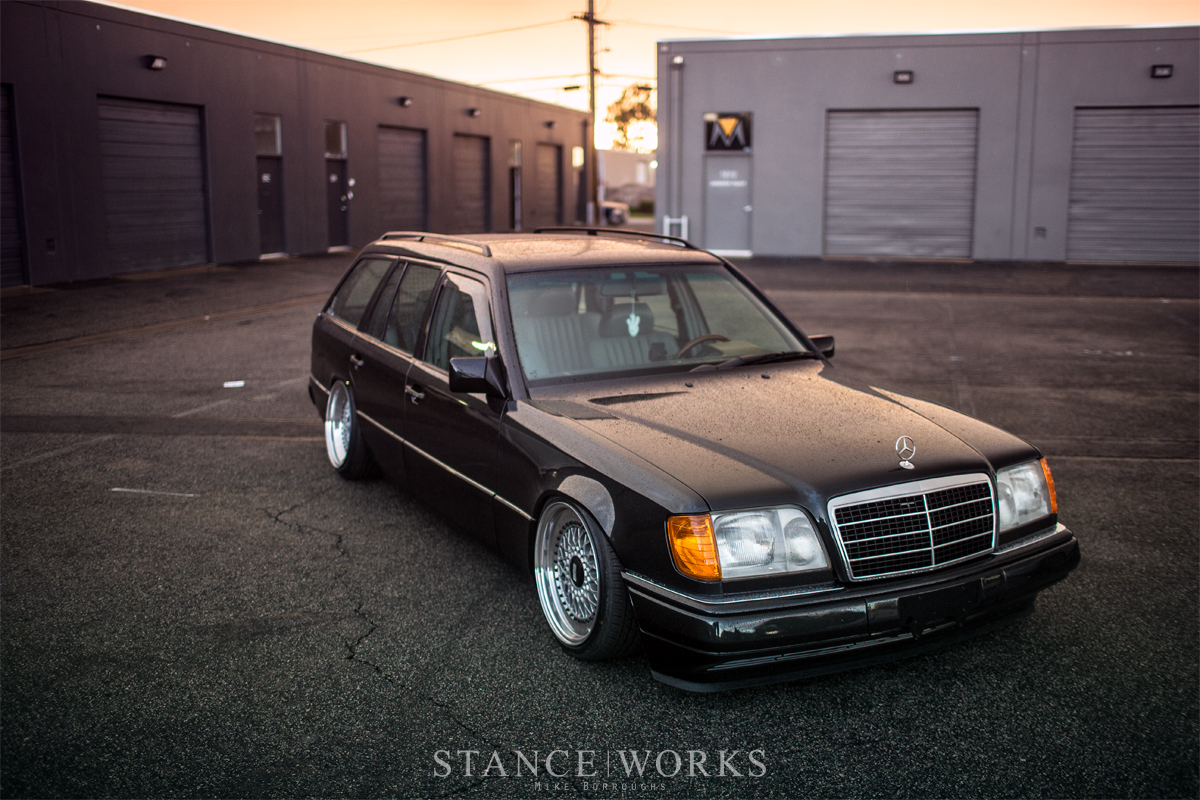 Armand Mariano's 1995 Mercedes-Benz S124 E320 Estate stands out with its rare Black Pearl Metallic finish and a refined aesthetic. The wagon features a custom air suspension setup with Silver Project adjustable arms and BBS RS wheels, perfectly capturing the 90s vibe. It's a testament to Armand's passion for Mercedes, blending style and usability in a striking daily driver.