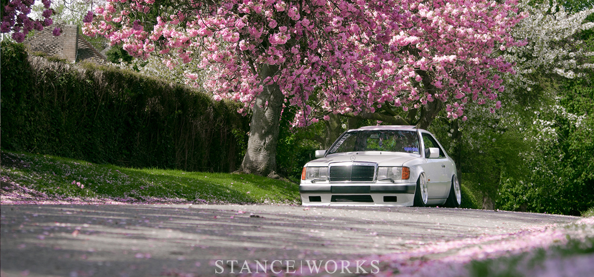 Tom Heap's meticulously crafted Mercedes 300CE sets a stunning presence with its low-slung stance and classic two-tone German styling. Featuring custom air suspension and unique 3-piece Impul R5 wheels, this build exemplifies dedication to detail and aesthetic execution.
