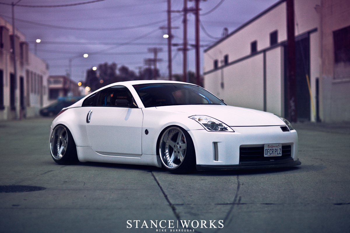 Milt Salamanca's Nissan 350Z is a visual statement with its flat white paint and aggressive stance. Known for its notable fitment, it's equipped with Work Equips and exudes a subtle yet impactful presence in the automotive community. Milt, as a founder of the Low'N Slow crew, merges car culture with genuine camaraderie.