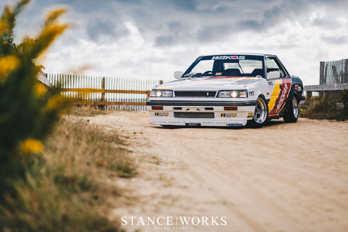 Kevin Legaspi's HR31 Skyline stands out with its period-correct colorway and unique four-door hardtop design, embodying a mid-’80s Japanese racing aesthetic. Its allure lies in the harmonious blend of style and subtlety rather than overt modifications, making it a rare find in the USA.