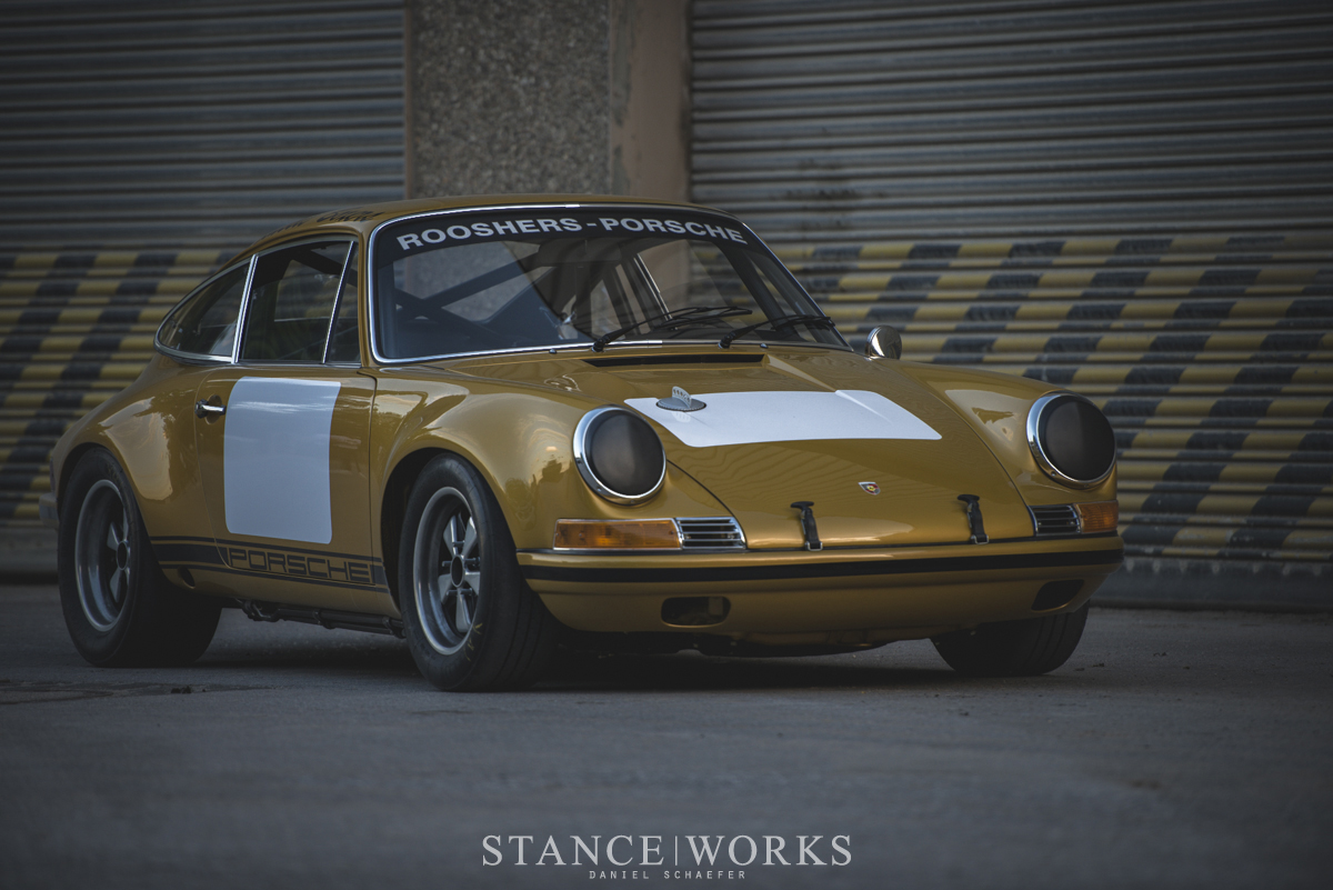 Daniel Schaefer's 1970 Porsche 911T is a meticulous tribute to the S/T FIA Group 4 racers, featuring a gold metallic paint that nods to its era. Enhanced with wider arches and Group 4 body components, this build combines authenticity with racing pedigree. Its twin-plug 2.3-liter engine, built with precision, ensures it stays true to its racing roots.