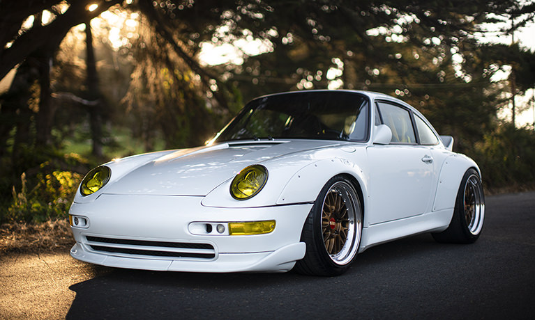 Adrian Ayson's 1995 Porsche 911 Carrera 2 bridges the gap between a traditional narrow-body 911 and a Clubsport/Outlaw style with unique personal flair. Built on the 993-chassis, the car was initially Grand Prix White but was repainted in Porsche’s Pure White (C9A) by Elite Auto Body in Sacramento, CA. Key modifications include Getty Design RSR-style fenders, front lip splitters, side skirts, and a deleted sunroof. The car rides on custom BBS Motorsport LM wheels with brushed bronze faces and polished lips, wrapped in Toyo Proxes tires. It features KW Suspension V3 coilovers for enhanced handling. The interior upgrades encompass Recaro Pole Position seats, a custom painted roll bar, a Fister short shift kit, and a standout 24K gold trim ring on the tachometer. A Fabspeed exhaust system complements the mostly stock 3.6-liter air-cooled engine.