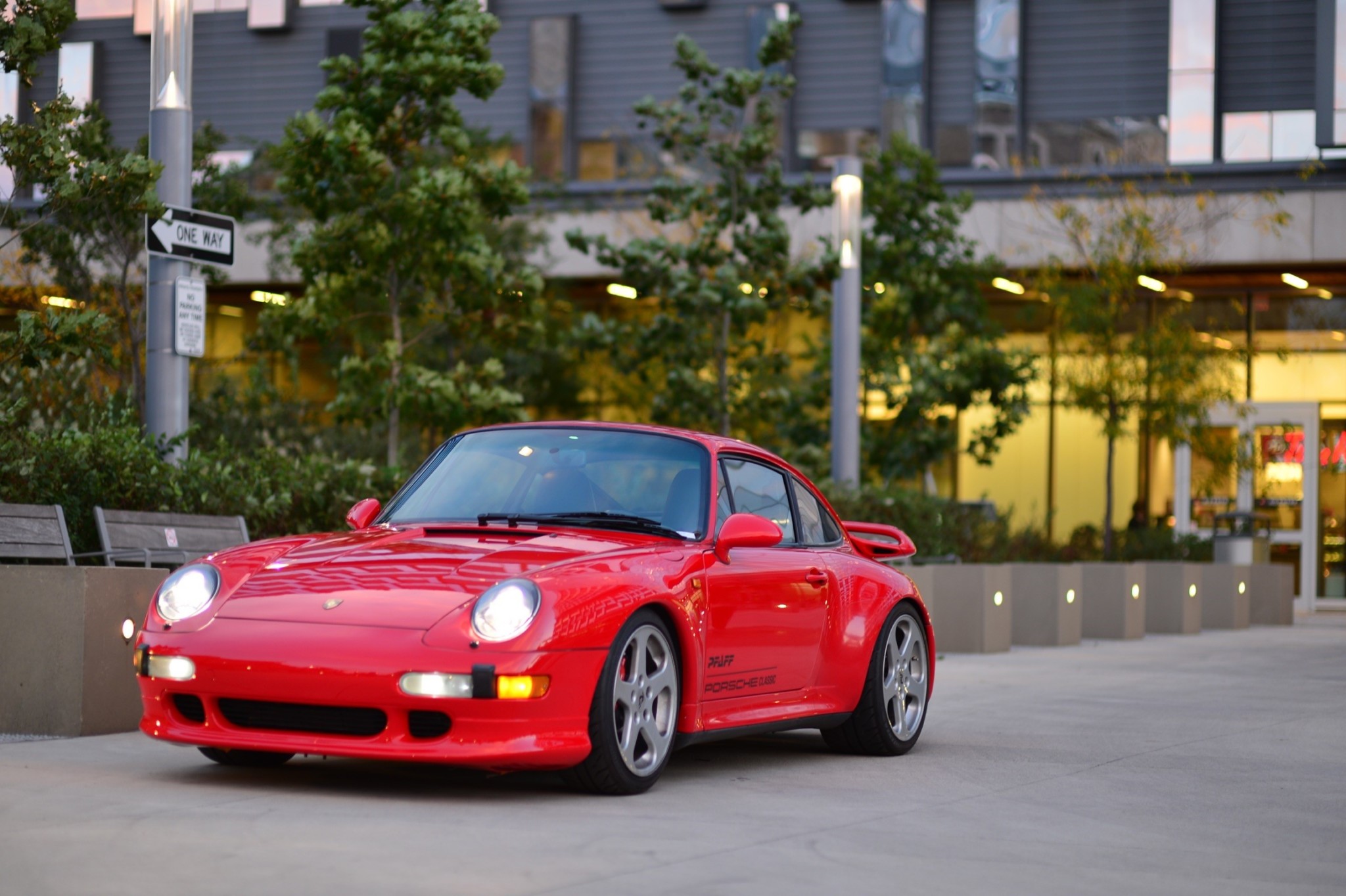 This 1997 Porsche 911 C4S, modified to RUF Turbo R specs, features a twin-turbocharged 3.6L engine, RUF body kit, and 18″ RUF alloys. Finished in Guards Red, it sports a stance-enhancing Bilstein coilover suspension.