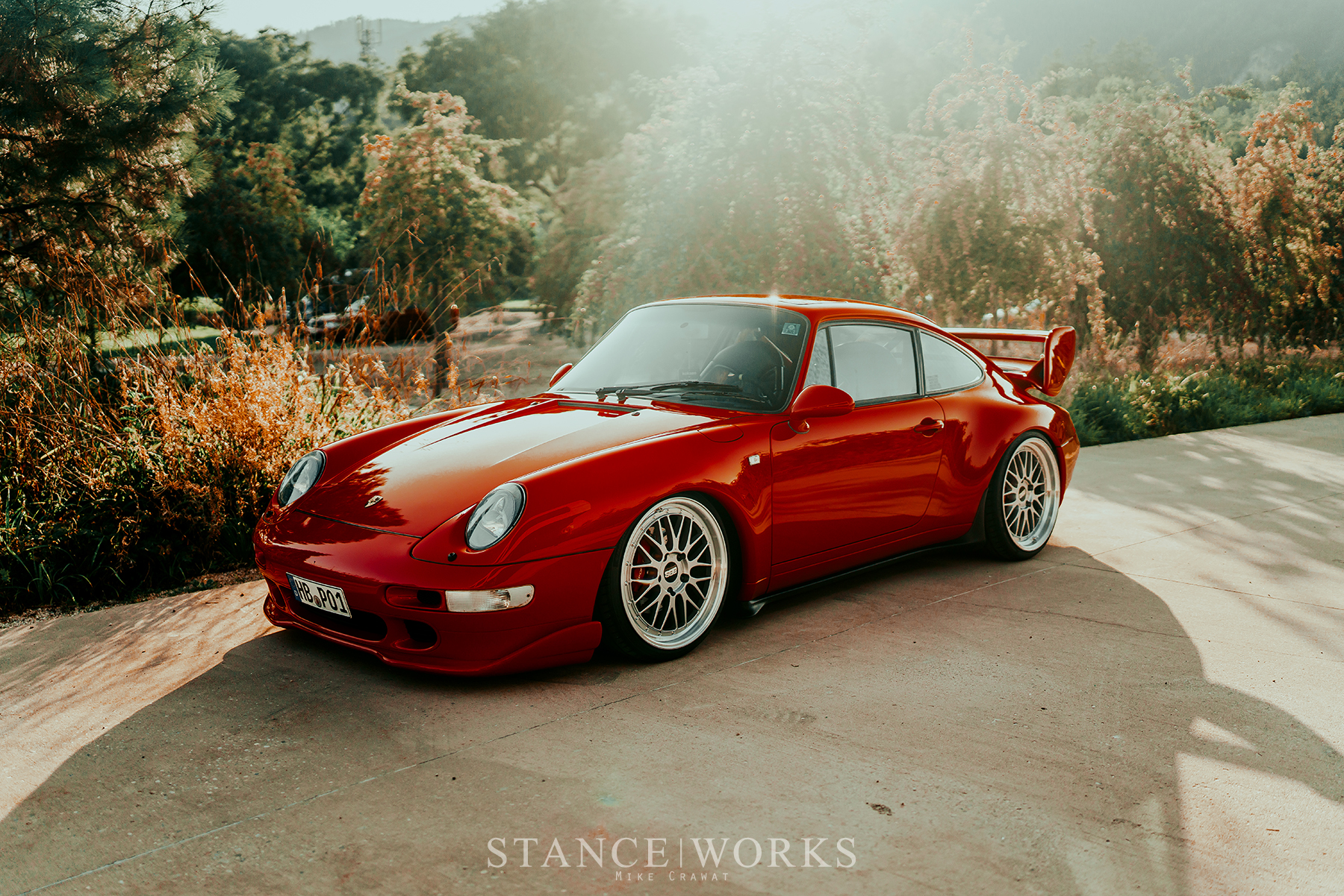 Timo Hollwedel's Porsche 993 captures the essence of the ’90s with its Guard's Red finish and iconic curves. The car sits on BBS LM wheels, highlighting the enduring appeal of the last air-cooled 911 generation.