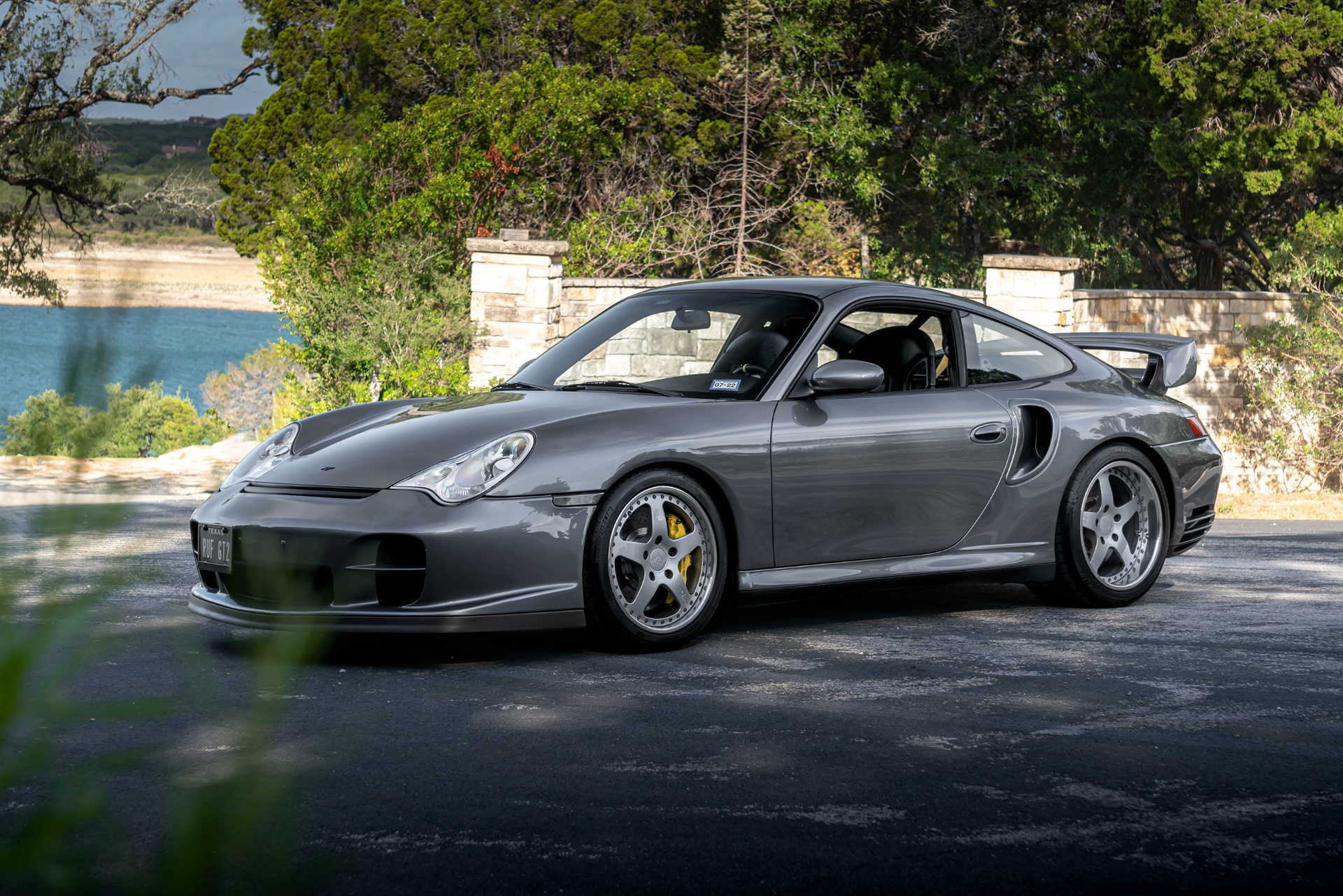 This RUF-modified 2002 Porsche 911 GT2 features a RT550 engine package and is finished in Seal Grey Metallic. Equipped with RUF hybrid turbochargers, Moton Clubsport coilovers, and Porsche Carbon Ceramic Brakes, it sports 18” RUF Modular wheels and GT3 seats.