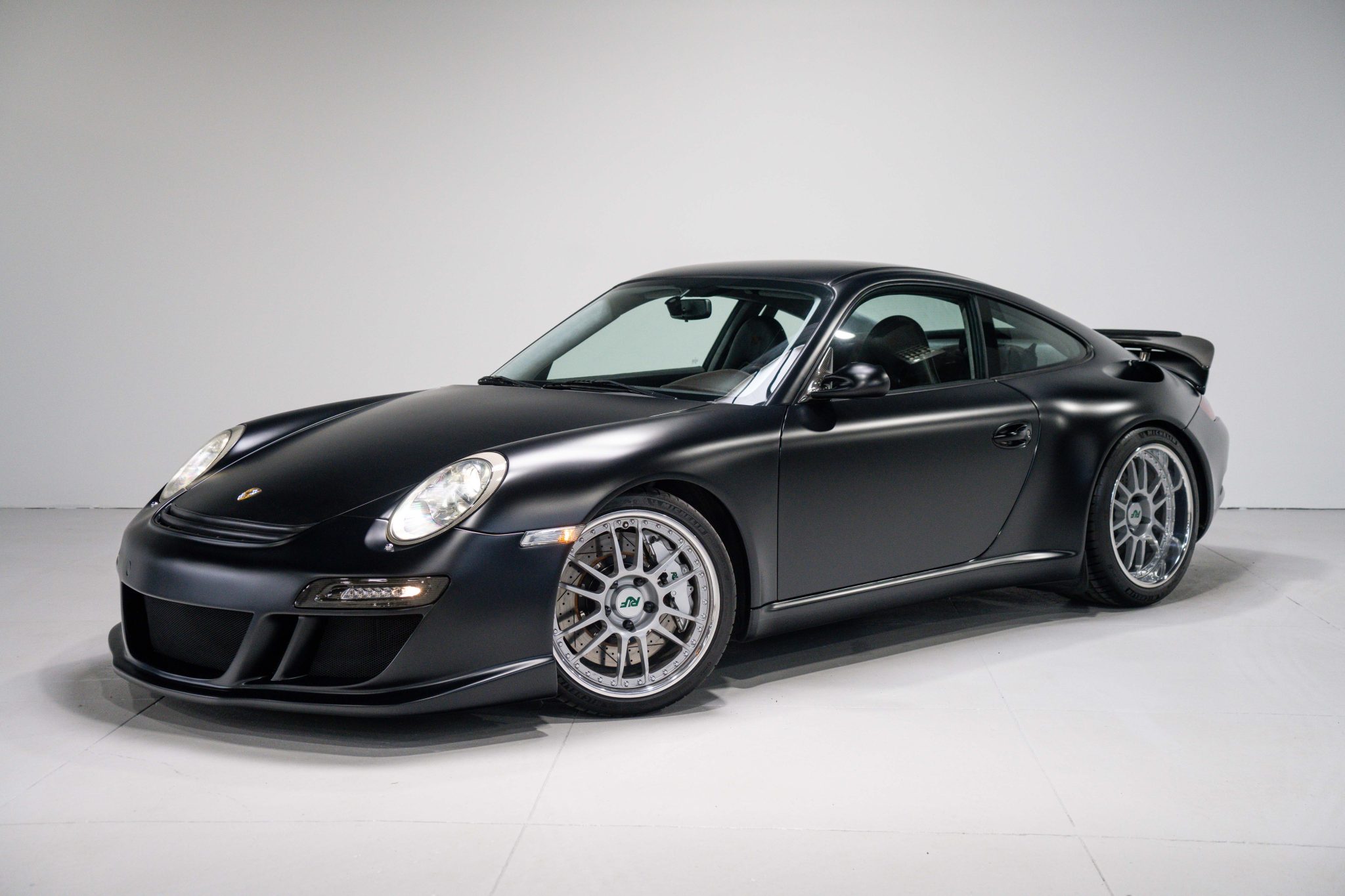 This 2006 RUF Rt12 S is finished in matte black and features revised aerodynamics with larger air ducts, LED lighting, and an exposed carbon-fiber rear wing. The car rides on multi-piece OZ wheels wrapped in Michelin Pilot Sport 4S tires.