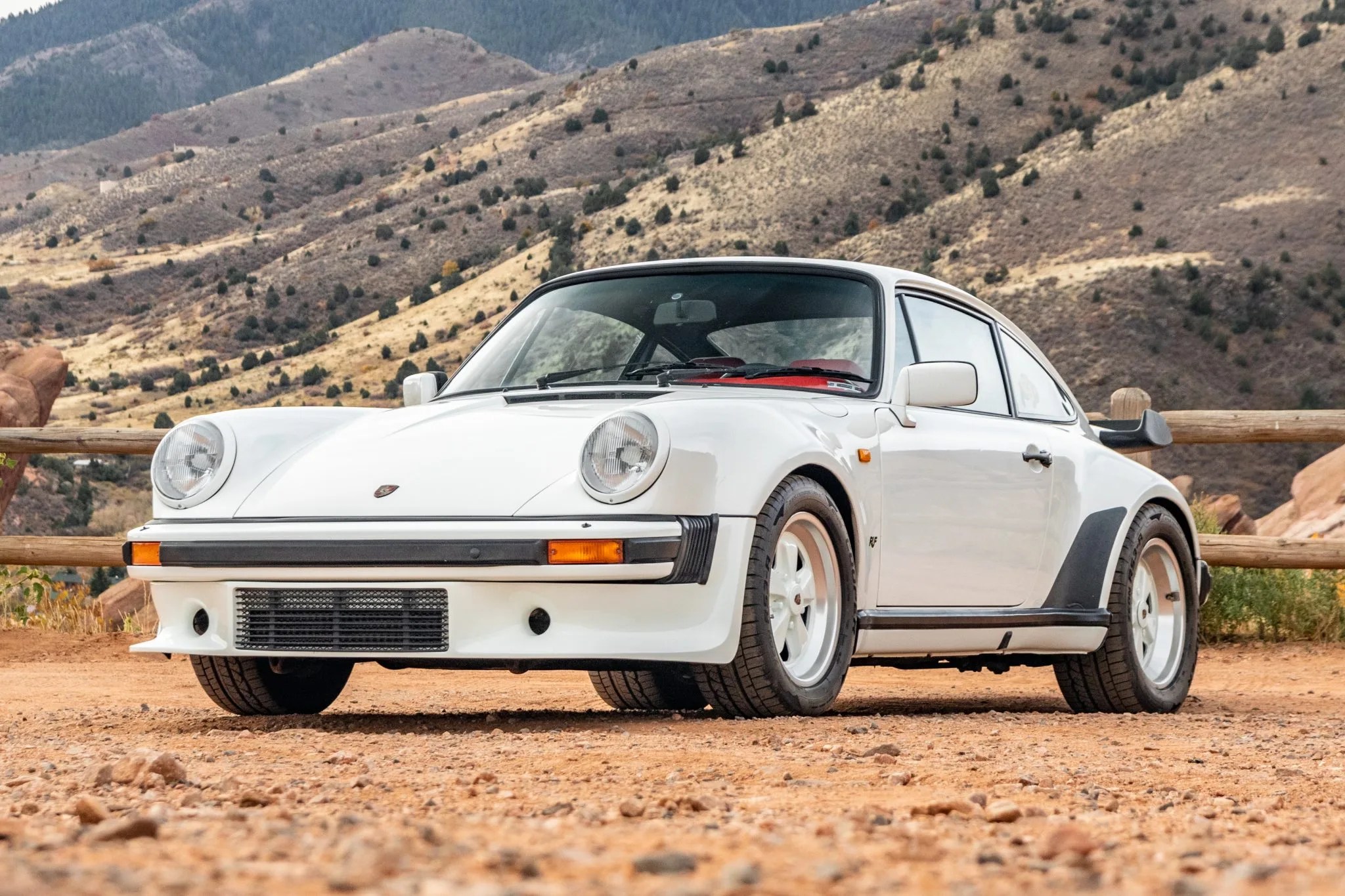 This RUF-modified 1982 Porsche 911 Turbo in Grand Prix White features a 3.3L flat-six with a Borg Warner K27 turbocharger, RUF air dam, and intercooler. The stunning Can-Can red leather interior complements the staggered 16-inch Fuchs wheels. This Grand Prix White 1982 Porsche 911 Turbo features RUF enhancements including an intercooler, front air dam, and badges. It has staggered-width 16-inch Fuchs wheels with Cooper Zeon RS3A tires, a prominent rear spoiler, and a Can-Can Red leather interior.