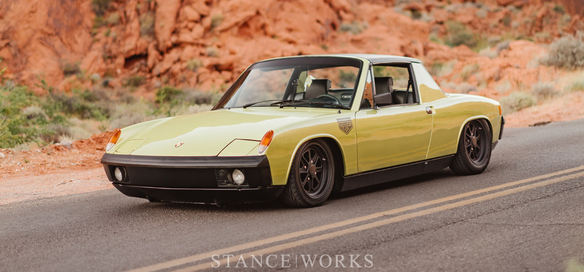 Connor Schenk's 1973 Porsche 914 2.0 blends a factory Delphi Green Metallic finish with an 'Outlaw' aesthetic, featuring European bodywork touches and a low stance on matte black Fifteen52 Outlaw 002 wheels. A new 2056cc Type 4 motor and dual Weber 40 IDF carbs enhance its performance, while the impeccably restored interior adds comfort true to its 1973 roots.