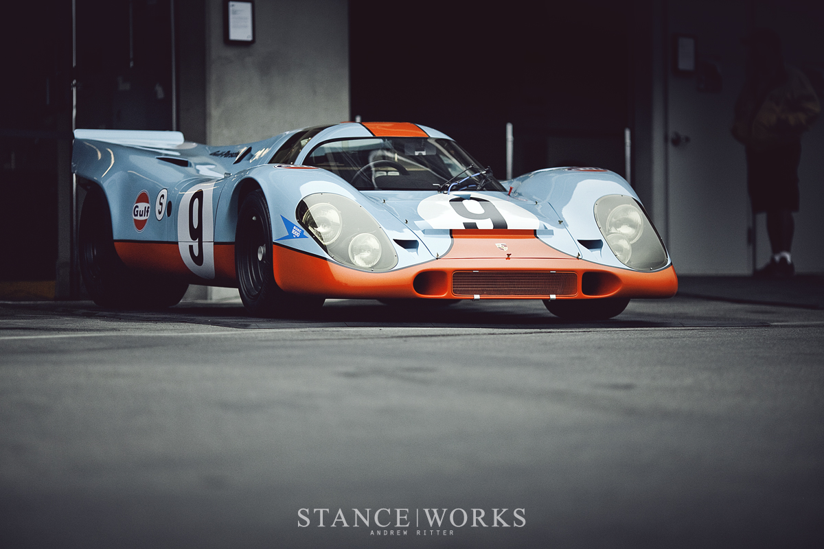 The Porsche 917K 004/017 has been masterfully restored by Canepa in conjunction with Gunnar Racing, preserving its lightweight engineering and iconic Gulf livery. This race car embodies a blend of historical racing aesthetics and meticulous weight-saving craftsmanship.