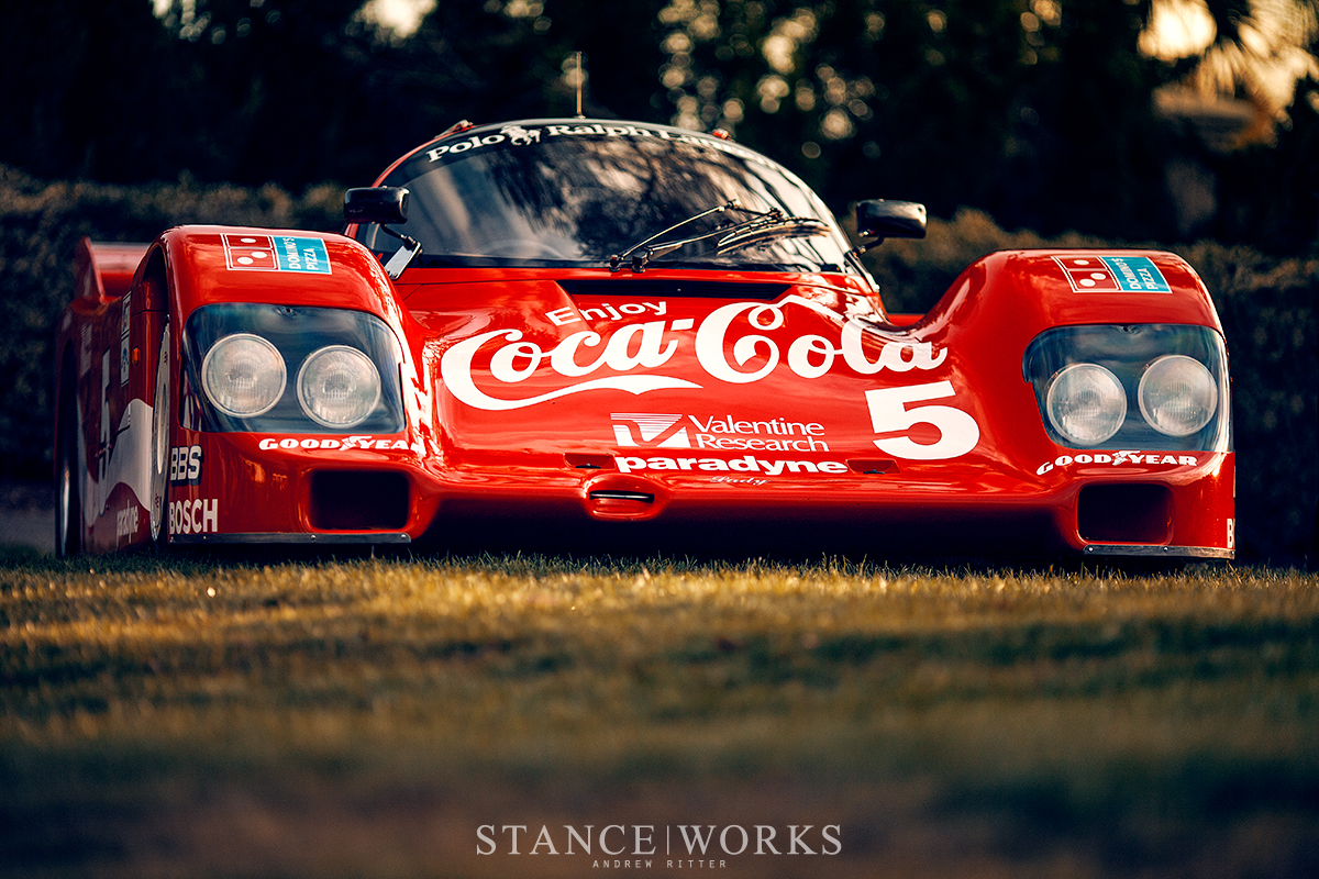 The iconic No. 5 Bob Akin Motor Racing Porsche 962, decorated in striking Coca-Cola livery, exemplifies the golden era of the GTP class. This legendary 1986 Sebring winner, with its vivid red paint and aerodynamic prowess, captures the spirit of '70s and '80s prototype racing.