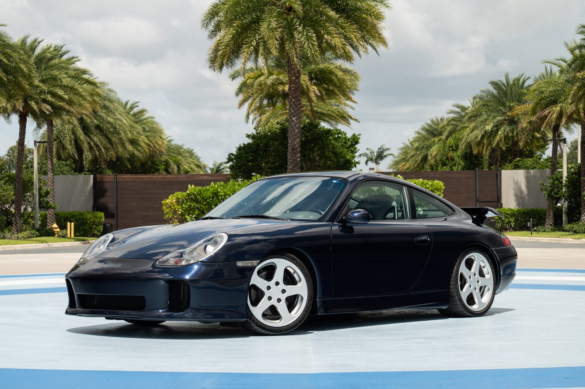 One of 17 examples, this 2001 RUF RGT is finished in Midnight Blue with RUF-designed aerodynamic elements. It features a 3.6-liter RUF-modified flat-six engine, 18-inch RUF wheels, and Recaro Clubsport seats.