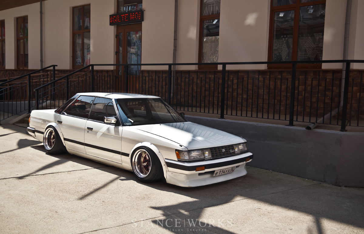 Vladislav Shkurko's Toyota GX71 Mark II blends classic Japanese styling with a personal touch, featuring a custom air suspension setup and striking white paint over red wheels. This sedan embodies a true vintage flair with thoughtful design and execution.