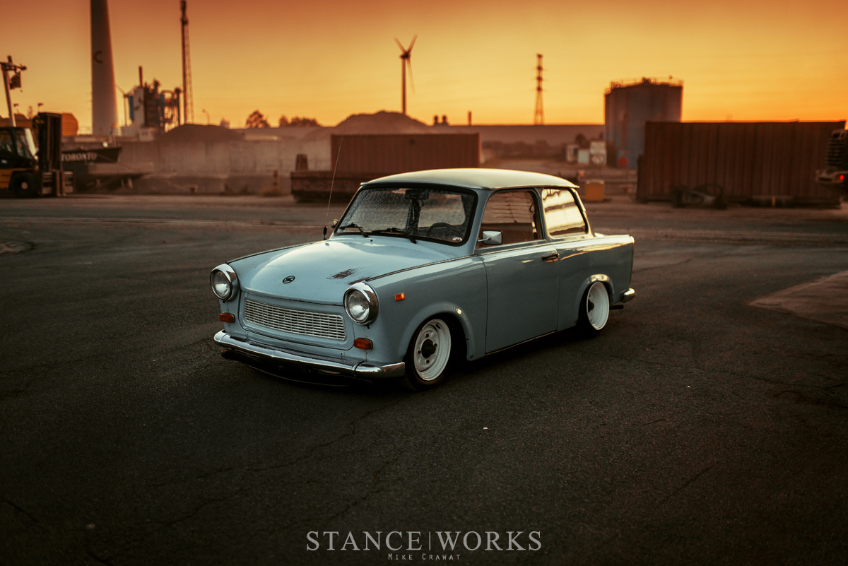 This Trabant 601, set against a quarry backdrop, captivates with its powder blue patina and air suspension, giving it a grounded stance. The quirky two-door coupe combines classic charm with a playful character, making it a delightful nod to East Germany's automotive past.