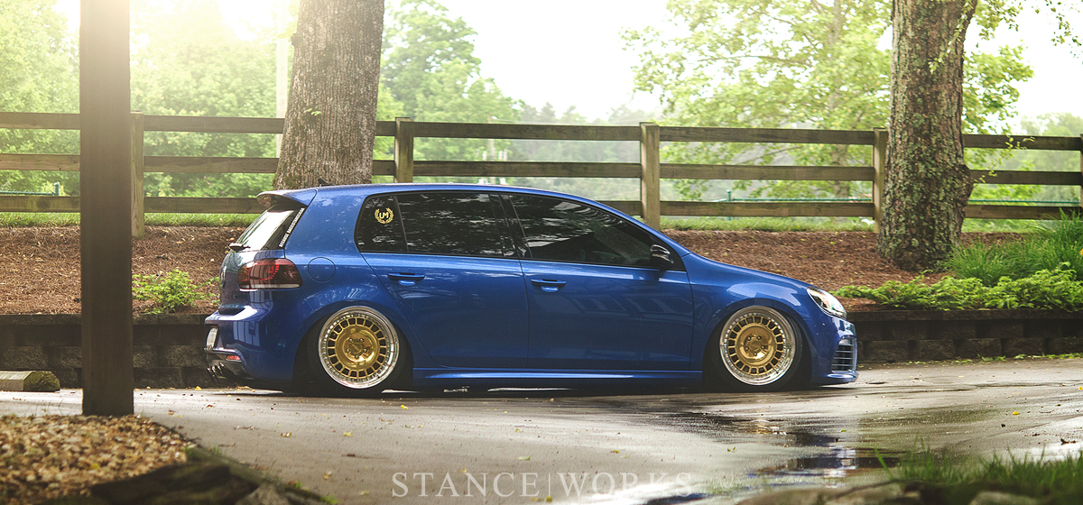 Luke Williams' Volkswagen R is a blend of performance and style, featuring a built 535hp engine and a striking air suspension. It sits on Rotiform VCE Race wheels, highlighted by a vivid candy gold finish, making it equally formidable on the show floor and back roads.