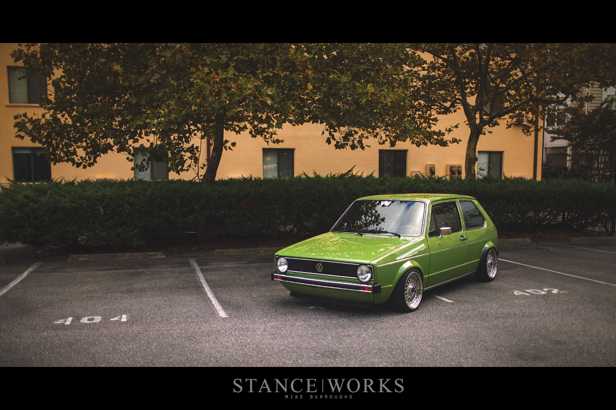 This vibrant Manila green 1980 VW MK1 Rabbit, owned by Jes and Kris Clewell, showcases a meticulous restoration with a custom 2.1-liter AGE engine. Attention to detail extends to the BBS RS 070 wheels and 'Ultra Ultra Low' H&R coilovers, blending vintage aesthetics with modern enhancements.