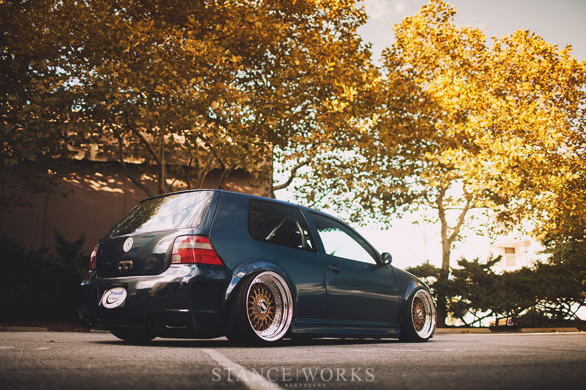 Mike Houck's 2002 VW GTI features a unique AWD turbo-diesel setup with a compound turbo system, mated to a Haldex AWD system. Finished in a customized exterior with step-lip BBS wheels, this build combines intricate engineering with stylish aesthetics.