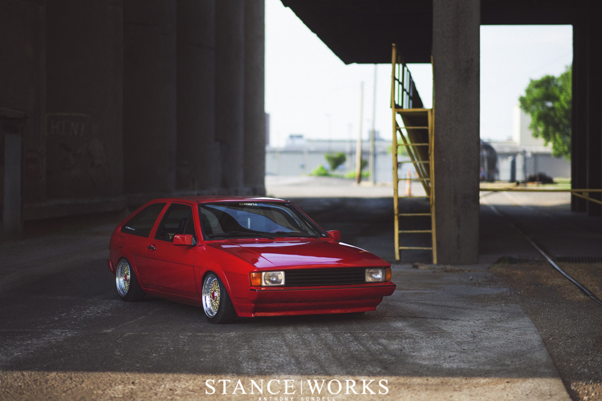 Trevor Picknell's 1988 MK2 Volkswagen Scirocco is a labor of love, featuring a striking red finish and BBS RS001 wheels. This nearly decade-long project includes a bay shave and respray, showcasing dedication to transforming the once unassuming liftback into a standout example of a focused and individualized build.